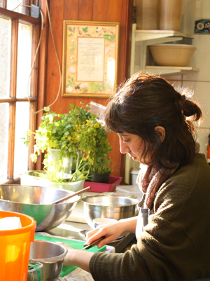 The Beshara School kitchen at Chisholme House is unique among institutional kitchens. It may be because fresh bread is baked everyday, or because the lamb comes from the field you can see from the dining room, or because for much of the short growing season, its walled garden produces a good deal of the vegetables it uses – in spite of being only fifty feet from the altitudinal limit for horticulture.
